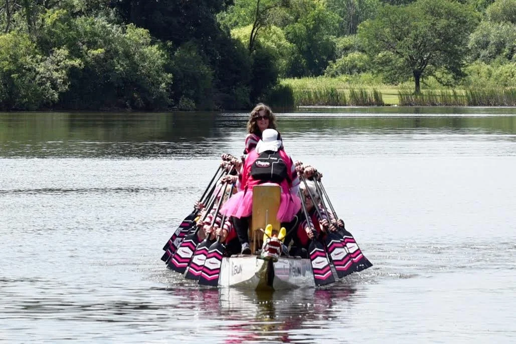 Dragon boating is an ancient water sport that, since the 1990s, has become a growing rehabilitation therapy for tens of thousands of women (and men) worldwide who have been diagnosed with breast cancer. A full boat is typically powered by 20 paddlers seated in 10 rows of two, a caller at the front and a steer person at the back. Survivors across the world have formed dragon boat teams and are paddling and racing regularly—promoting good health, individual and group empowerment, and breast cancer awareness. An emerging body of research suggests physical activity not only has a positive effect on quality of life following a diagnosis of cancer, but it may also improve survival.